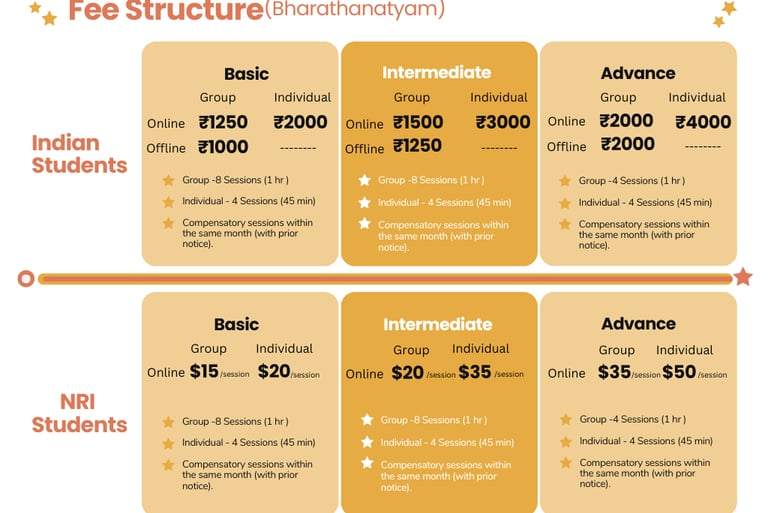Our Bharatanatyam sessions cater to students of all levels—from beginners to advanced practitioners—and are enriched with comprehensive training in: